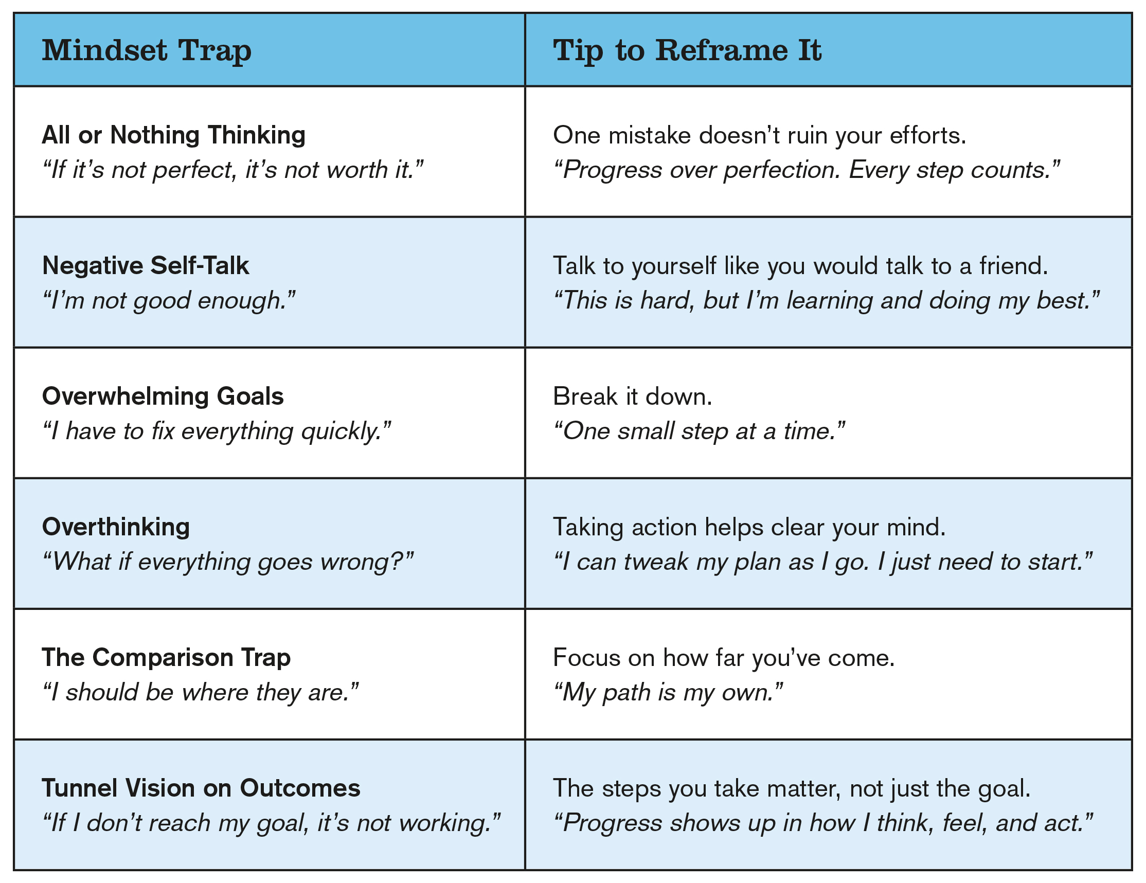 Do you ever get stuck in a loop of unhelpful thoughts? You’re not alone. It’s important to shift your thinking, especially when you’re trying to start new healthy habits. Discover six mindset traps and simple tips to overcome them.